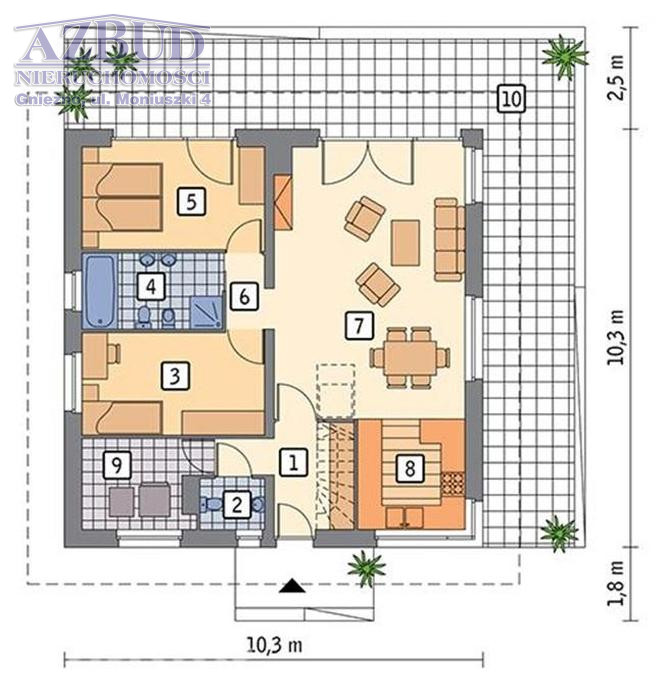 - Dom parterowy z możliwością adaptacji poddasza